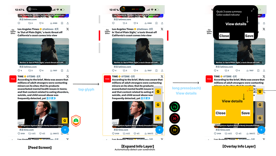 fast credibility checks during scrolling and deeper post investigation during longer sessions.