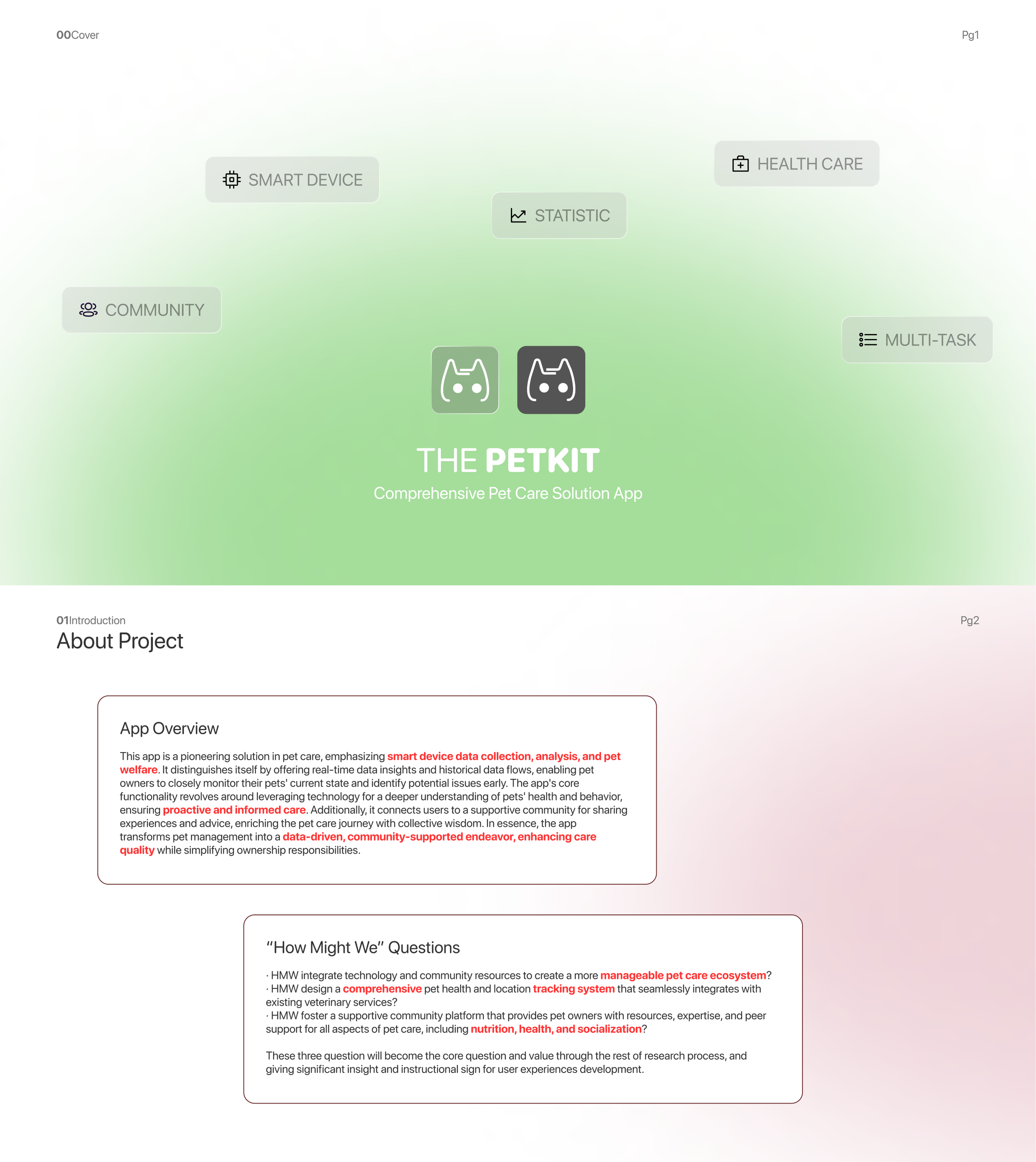Designed a smart pet care app integrating real-time health tracking, personalized care, and community support for proactive pet management.