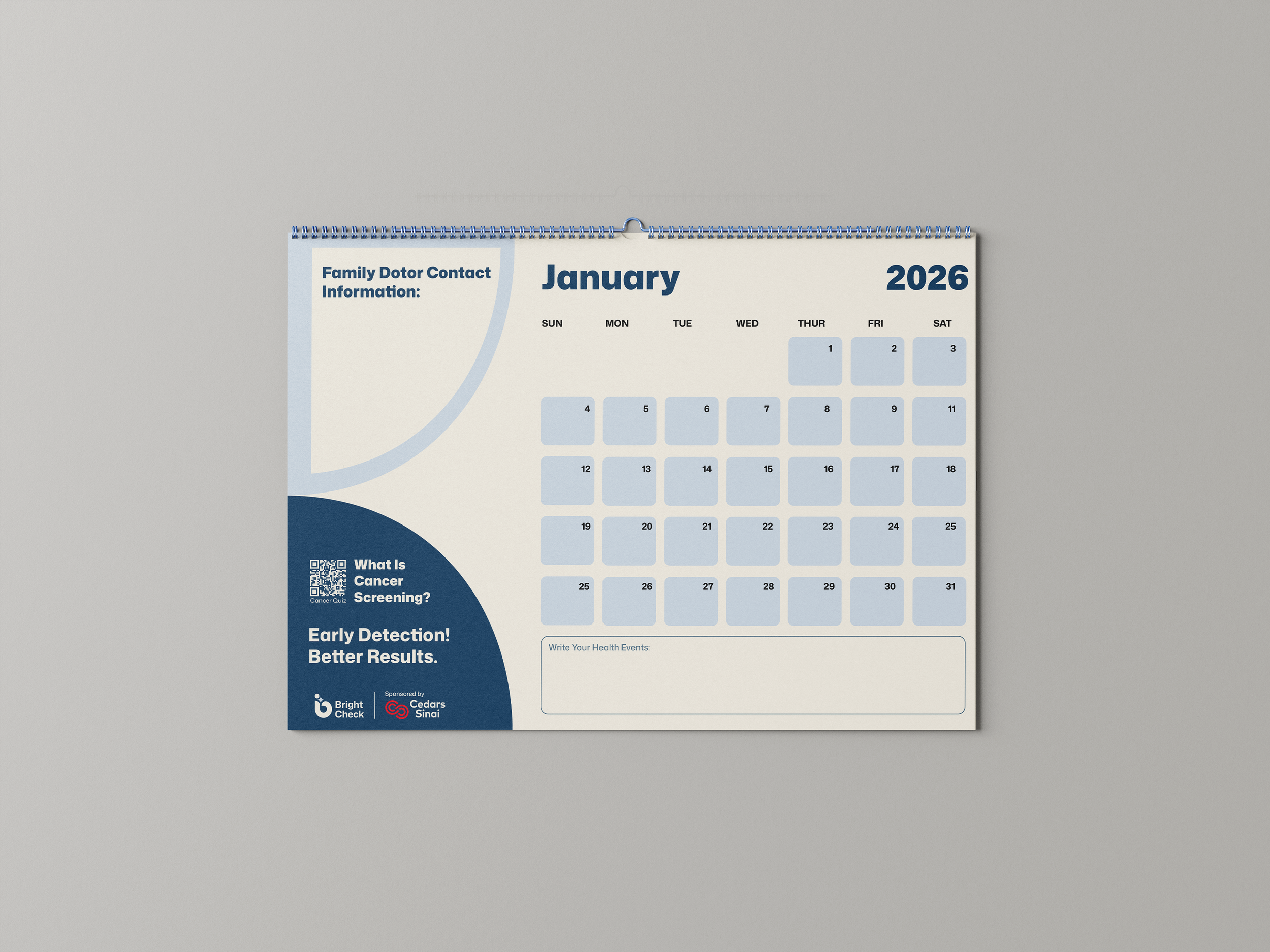 Bright Check is a preventative-health brand created with Cedars-Sinai to make cancer screening feel clear, approachable, and culturally attuned for Korean Americans 50+. Through warm visual language and simplified touchpoints, the brand reframes screening from a fearful medical task into an empowering part of everyday wellness.